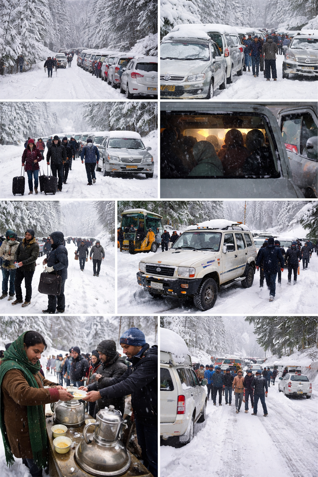 मनाली ट्रैफिक नज़ारा बना इंटरनेट वायरल: गाड़ियाँ, बर्फ, और लोग।